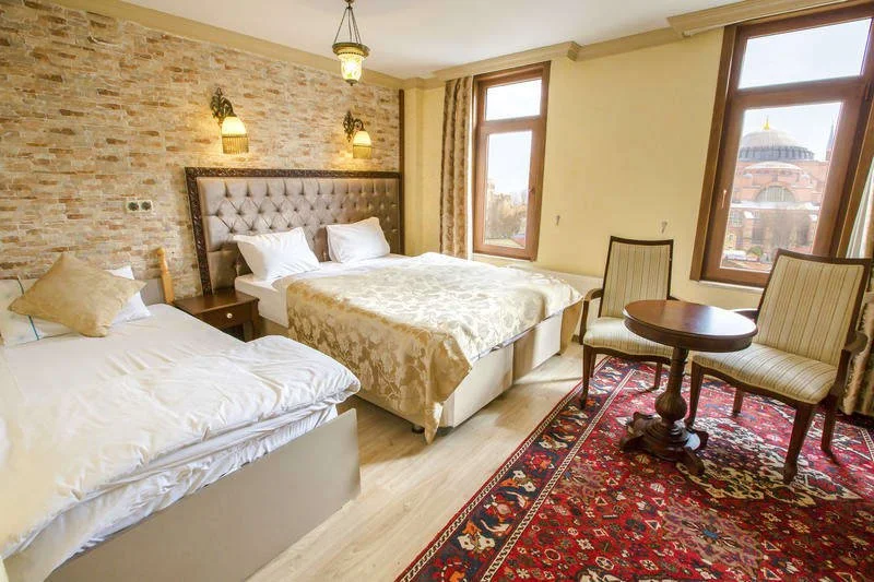 Great for booking with a buddy, this deluxe double room comes with two separate beds, air-conditioning, and has a great view of the famous Hagia Sophia.